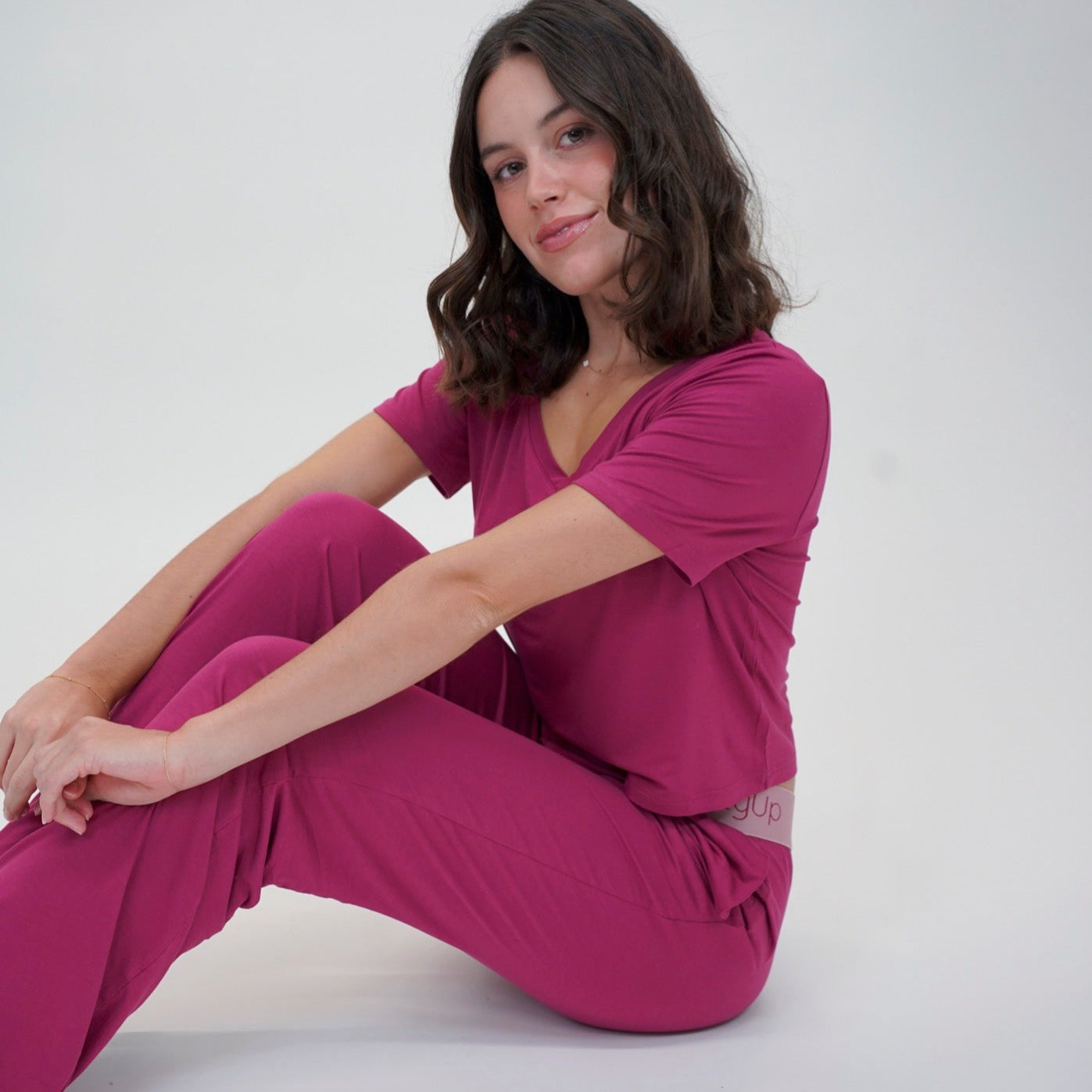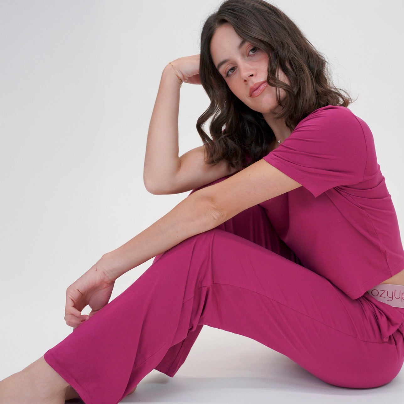Berry Kiss Women's Pajama Pants Set w/ Cropped Shirt