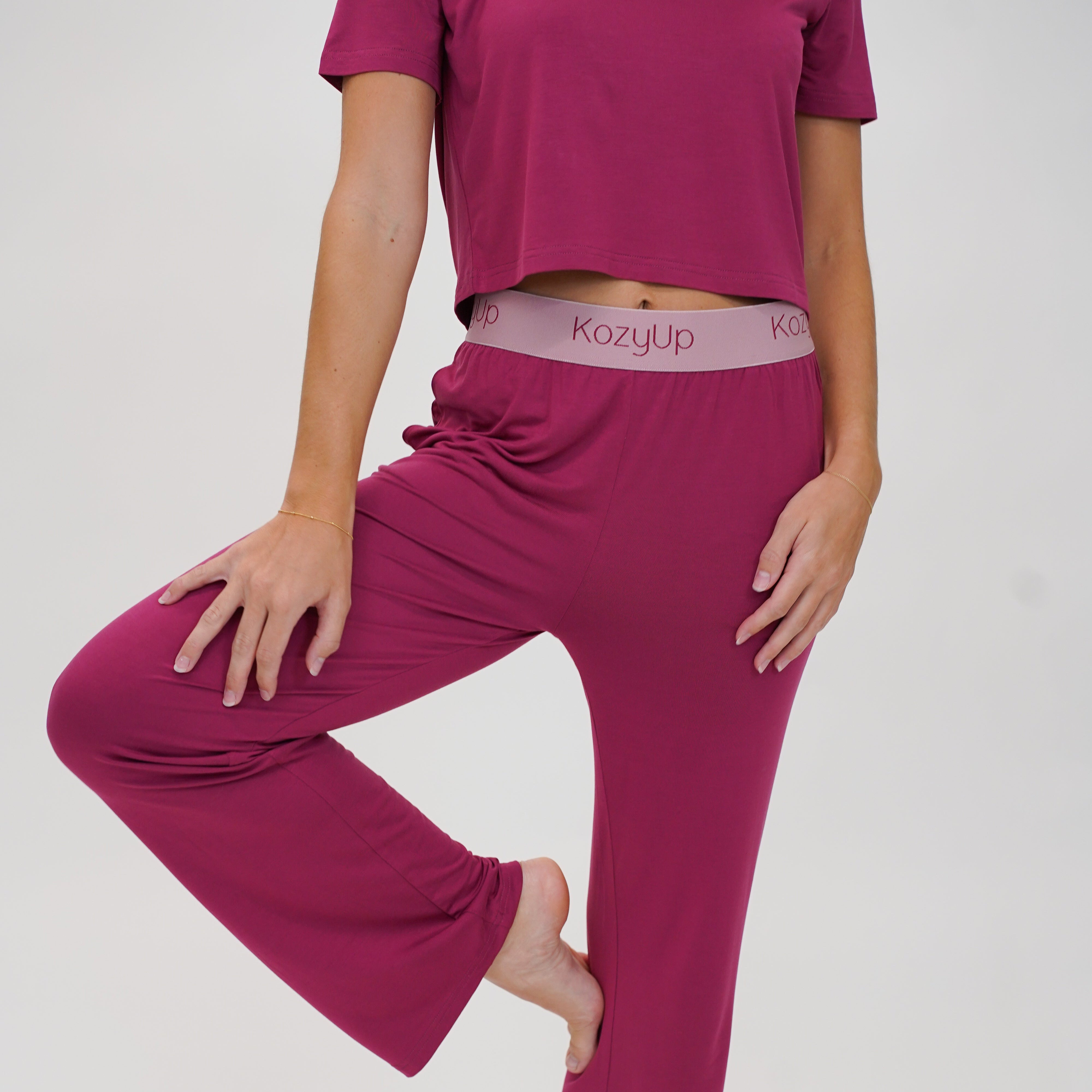 Berry Kiss Women's Pajama Pants Set w/ Cropped Shirt